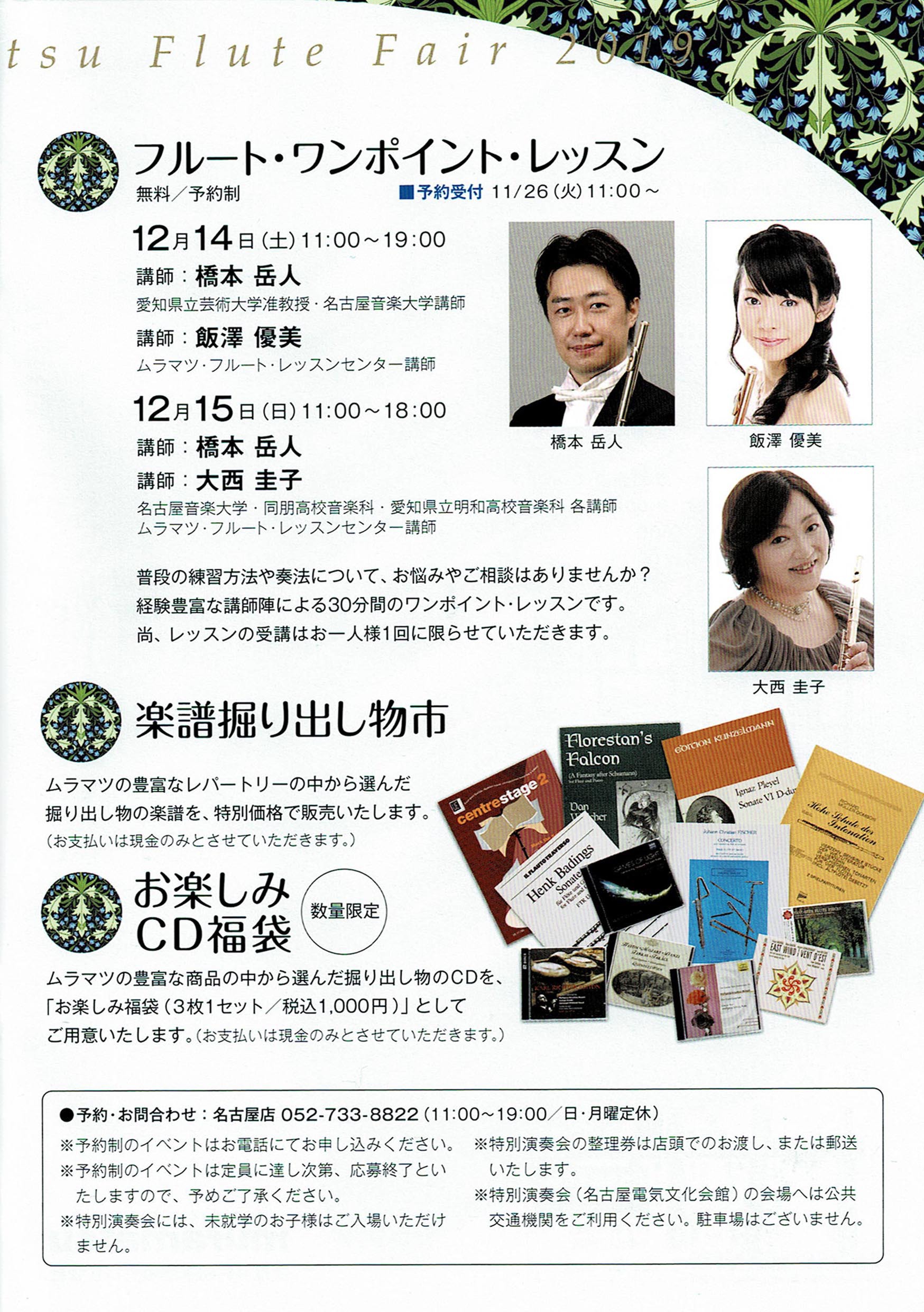 | *ムラマツ・フルート・フェア 2019 名古屋会場|2019.11.18 up| |